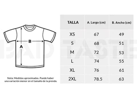 Si bien trabajamos con tallas estándar, recomendamos comparar un polo de uso actual con las medidas indicadas. Al manejar diseños exclusivos y en stock limitado, por lo general todas las prendas se agotan rápidamente.